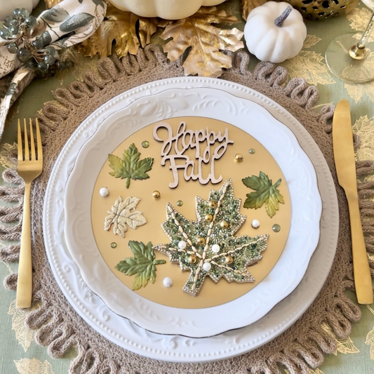 Happy Fall Leaves - Green/Gold - Tablescape and Table Setting Decor